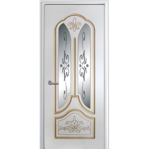 Дверь с ПВХ покрытием Александрия ДО (Софт белый/патина)